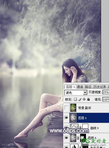 12、新建一个图层,盖印图层。选择菜单:滤镜 > 模糊 > 动感模糊,角度设置为-45度,距离设置为180,确定后把混合模式改为“滤色”,不透明度改为:15%,效果如下图。