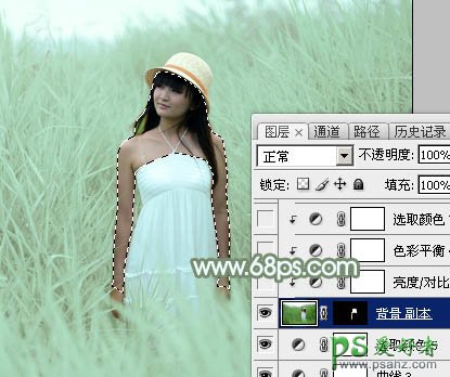 13、把背景图层复制一层,按Ctrl + Shift + ] 置顶,按住Alt键添加图层蒙版,用白色画笔把人物部分擦出来,效果如下图。