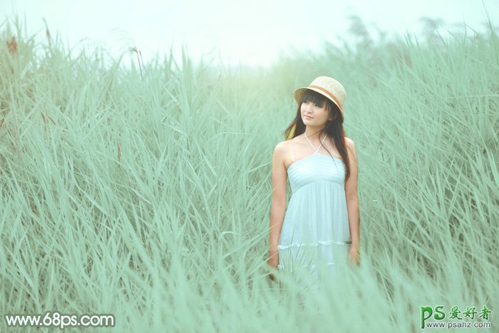 PS教程自学网今天为您推荐一篇PS美女图片调色教程:给绿草地里自拍的清纯少女调出甜美的青绿色,设计师Sener教您给MM照片调出一种唯美,甜美的色彩,调色的时候先把图片暗部及整体调亮一点,然后给天空部分增加一点淡青色,再把人物调亮调红润即可。 原图
