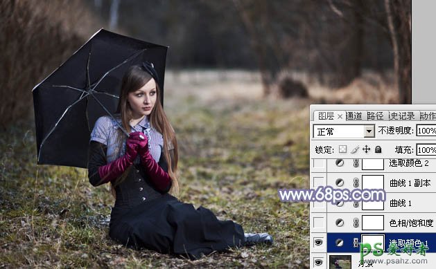 Photoshop给在郊外自拍的妩媚欧美少女写真照调出流行的秋季冷色