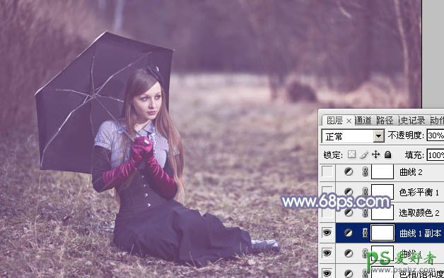 4、按Ctrl + J 把当前曲线调整图层复制一层,不透明度改为:30%,效果如下图。