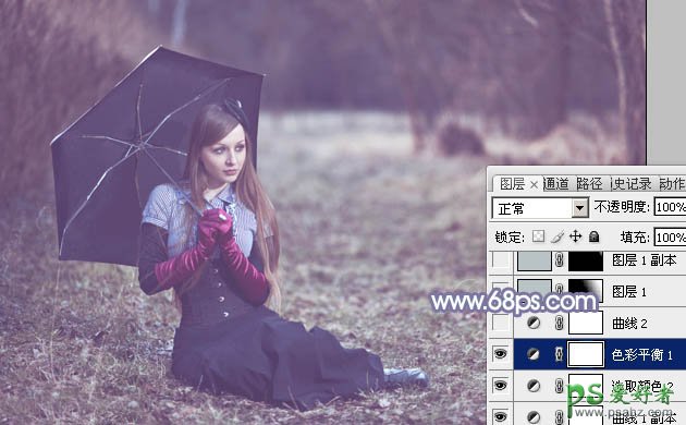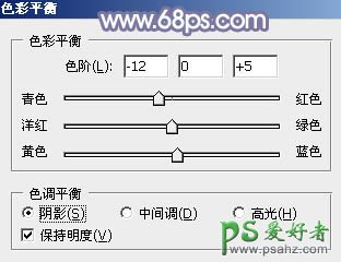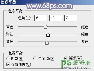 6、创建色彩平衡调整图层,对阴影,高光进行调整,参数及效果如下图。这一步给图片暗部及高光部分增加蓝色。