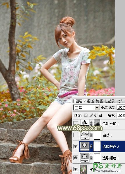 PS影楼后期调色教程:给公园自拍的少女生活照调出甜美的蓝紫...
