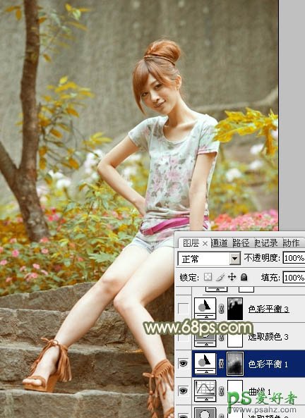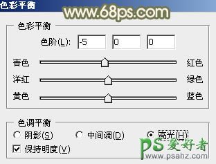 4、按Ctrl + Alt + 2 调出高光选区,创建色彩平衡调整图层,对中间调,高光进行调整,参数设置如图13,14,确定后用黑色画笔把下半部分擦出来,效果如图15。这一步给高光部分增加黄绿色。