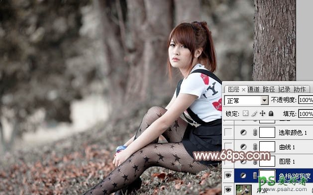 Photoshop给绿荫下自拍的可爱女孩儿生照调出古典中性淡褐色效果