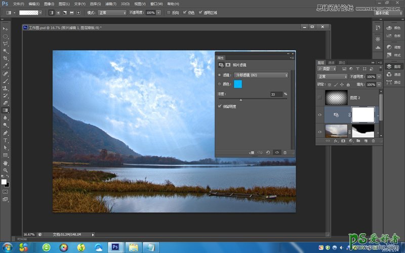 PS风景照调色实例教程:给湖景风光照片调出绚丽的艺术效果