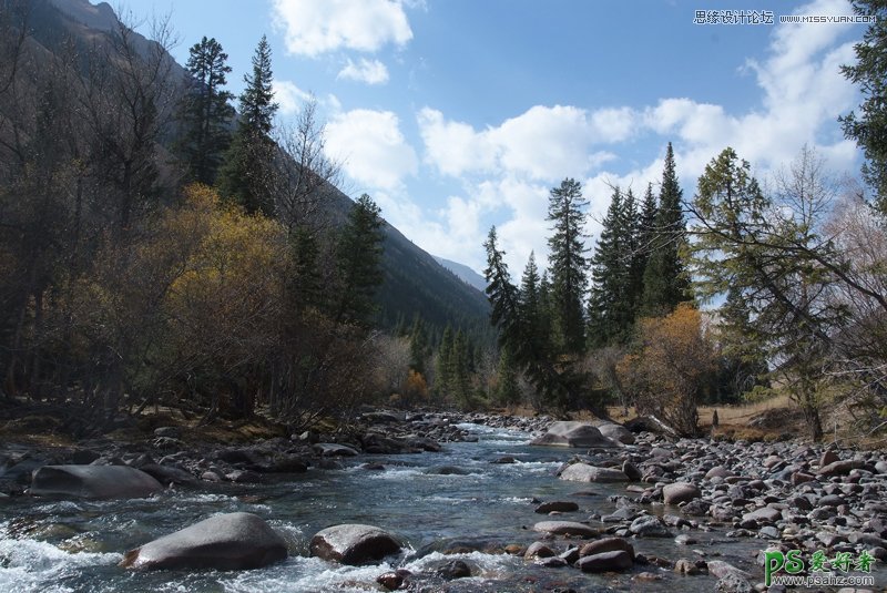 使用Photoshop软件给灰蒙蒙的秋景风光照片调出清新通透色彩效果