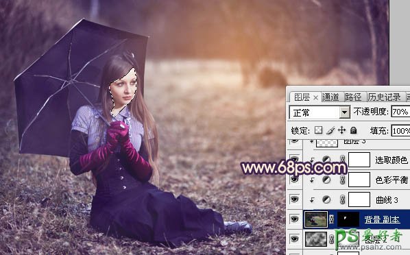 10、用钢笔勾出人物嘴唇,转为选区后创建曲线调整图层,稍微调亮并调红一点,效果如图29。