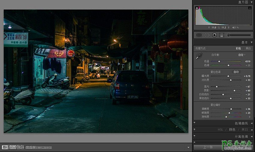 再到基本设置拉高对比度与清晰度,其他调整视图片而定