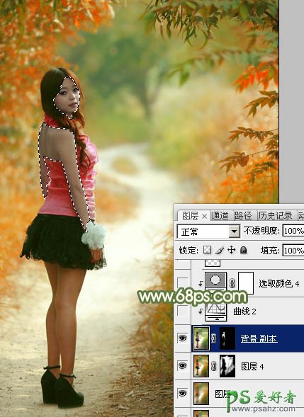 11、按Ctrl + J 把背景图层复制一层,按Ctrl + Shift + ] 置顶,用套索工具把人物脸部及手臂部分选取出来,羽化1个像素后添加图层蒙版,如下图。