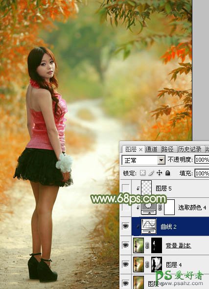 12、创建曲线调整图层,对RGB、红、蓝通道进行调整,参数设置如图28,确定后按Ctrl + Alt + G 创建剪贴蒙版,效果如图29。这一步把人物肤色调亮,调红润一点。