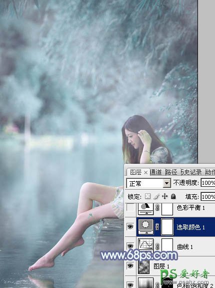 Photoshop给90后萝莉小美女水景外拍写真图片调出梦幻的淡蓝色