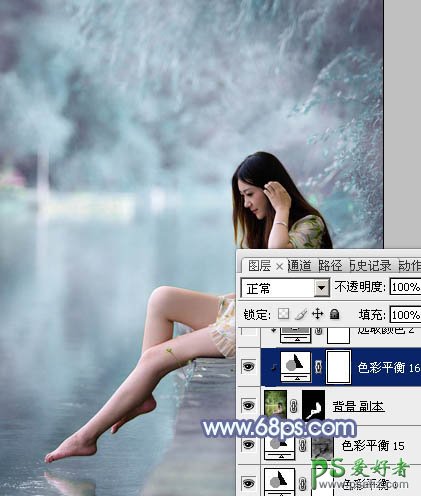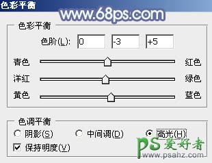 8、创建色彩平衡调整图层,对高光进行调整,参数设置如图20,确定后按Ctrl + Alt + G 创建剪贴蒙版,效果如图21。这一步给肤色高光部分增加蓝色。