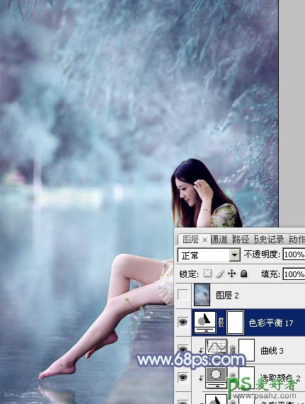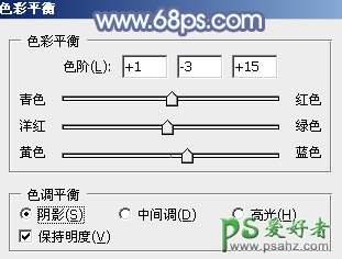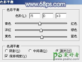 11、创建色彩平衡调整图层,对阴影,高光进行调整,参数设置如图27,28,效果如图29。这一步给图片高光及暗部增加蓝色。