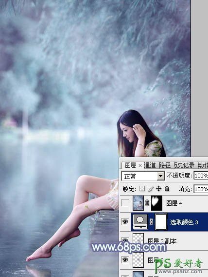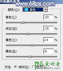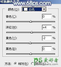 13、创建可选颜色调整图层,对青,白进行调整,参数设置如图31,32,效果如图33。这一步给图片增加淡蓝色。