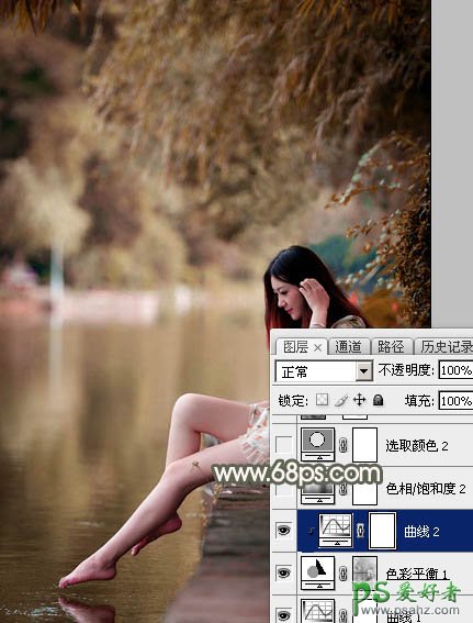 5、创建曲线调整图层,对绿色通道进行调整,参数设置如图11,确定后按Ctrl + Alt + G 创建剪贴蒙版,效果如图12。