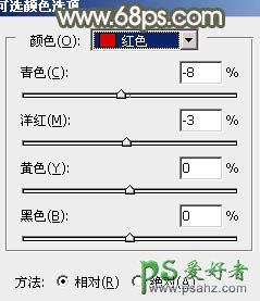 7、创建可选颜色调整图层,对红、黄、黑进行调整,参数设置如图15 - 17,确定后把图层不透明度改为:50%,效果如图18。这一步给图片增加红褐色。