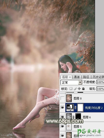14、创建亮度/对比度调整图层,适当增加图片对比度,参数及效果如下图。