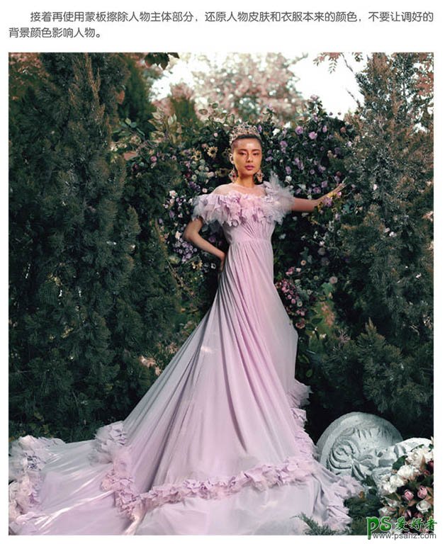 接着再使用蒙版擦除人物主体部分,还原人物皮肤和衣服本来的颜色,不要让调好的背景颜色影响人物。