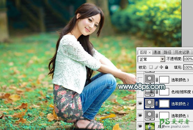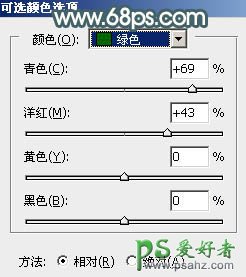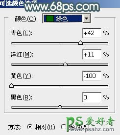 1、打开素材图片,创建可选颜色调整图层,对绿色进行调整,参数及效果如下图。这一步把图片中的绿色稍微加深一点。