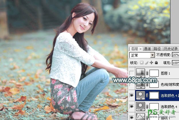 7、按Ctrl + J 把当前可选颜色调整图层复制一层,不透明度改为:20%,效果如下图。