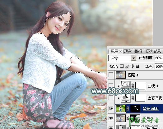 13、把背景图层复制一层,按Ctrl + Shift + ] 置顶,按住Alt键添加图层蒙版,用白色画笔把人物脸部及肤色部分擦出来,确定后把图层不透明度改为:50%,效果如下图。