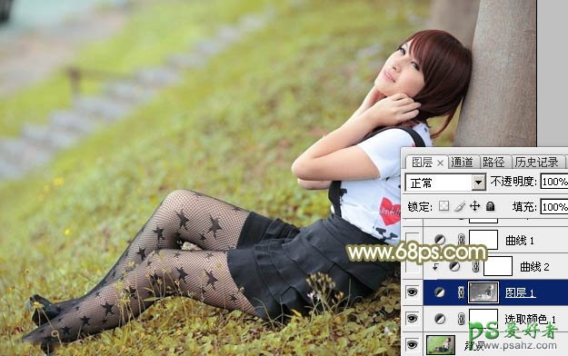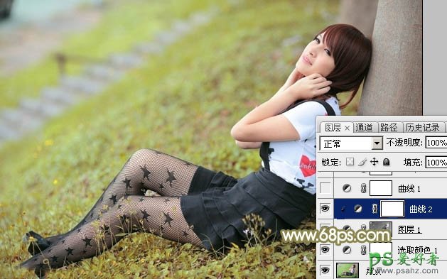 3、创建曲线调整图层,对RGB,绿色通道进行调整,参数设置如图5,6,确定后按Ctrl + Alt + G 创建剪贴蒙版,效果如图7。这一步微调图片暗部颜色。
