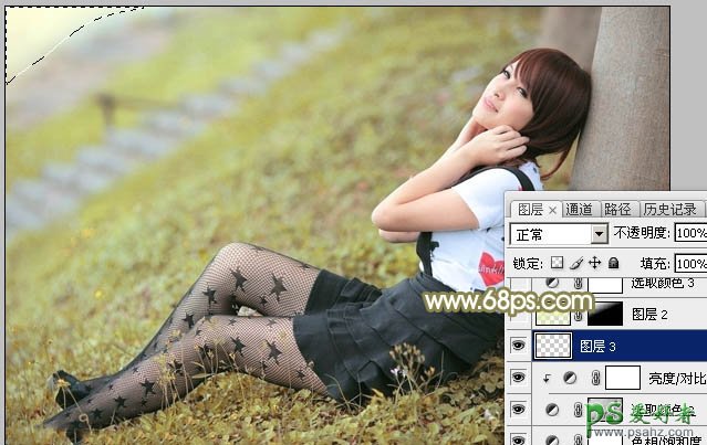 8、把前景色设置为淡黄色:#FFFFDB,用画笔把左上角部分涂上前景色。