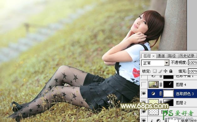 10、创建可选颜色调整图层,对黄、绿、白、中性色进行调整,参数设置如图20 - 23,效果如图24。这一步给图片增加一点淡青色。