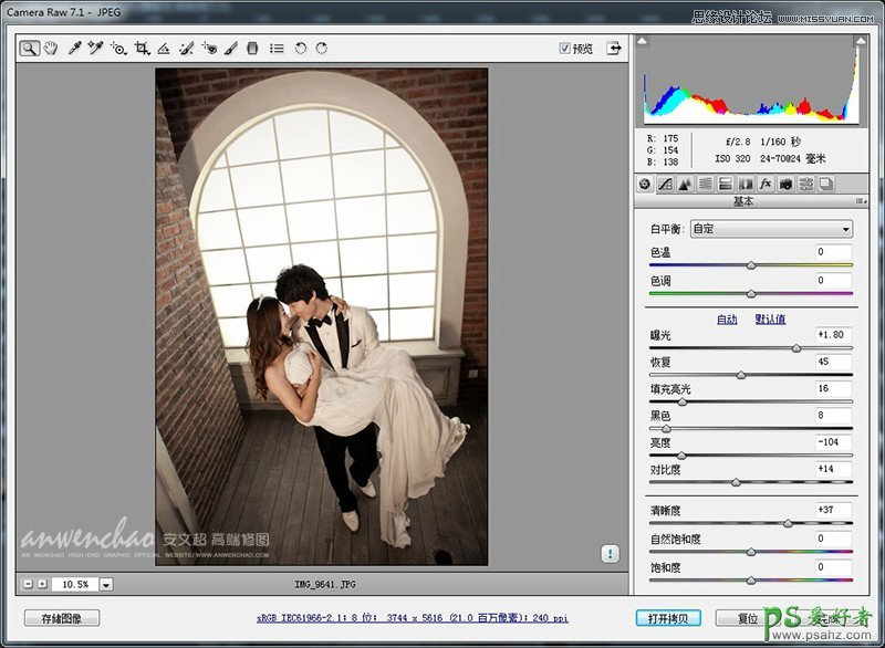 ps婚纱照调色教程:给室内婚片调出质感的冷色,唯美的韩式色调