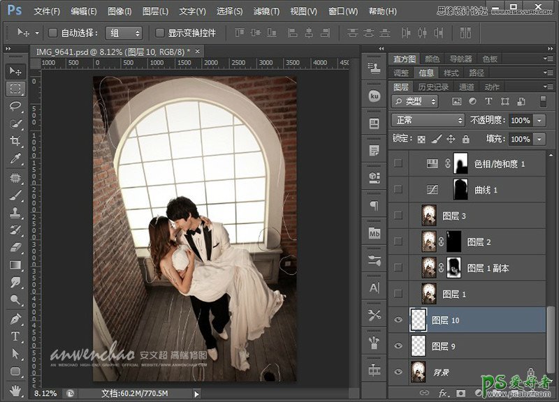 ps婚纱照调色教程:给室内婚片调出质感的冷色,唯美的韩式色调