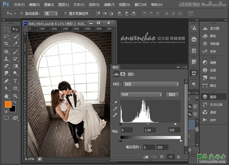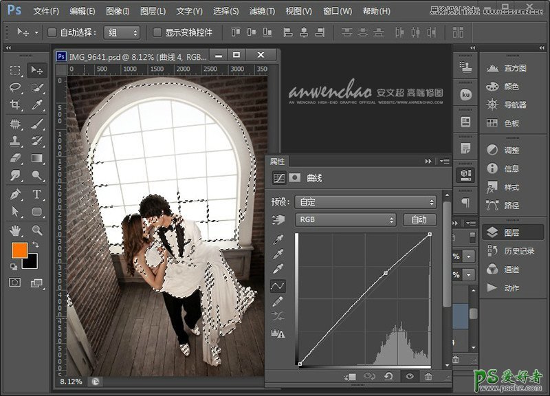 ps婚纱照调色教程:给室内婚片调出质感的冷色,唯美的韩式色调