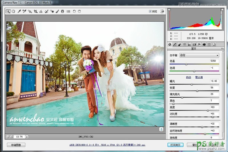 ps婚纱照调色教程:给室内婚片调出质感的冷色,唯美的韩式色...