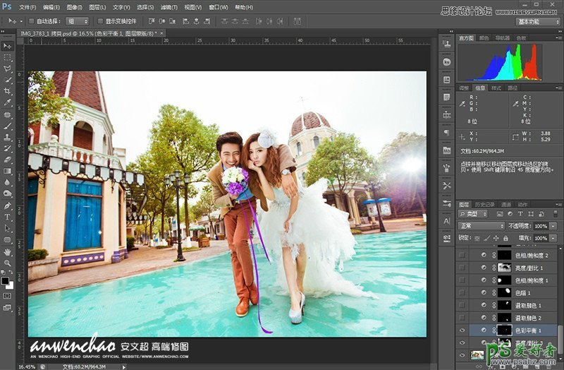 ps婚纱照调色教程:给室内婚片调出质感的冷色,唯美的韩式色...