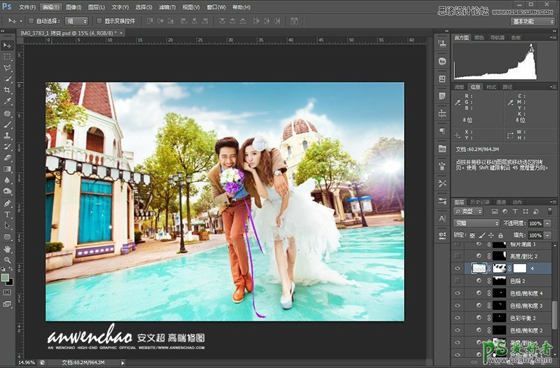 ps婚纱照调色教程:给室内婚片调出质感的冷色,唯美的韩式色...