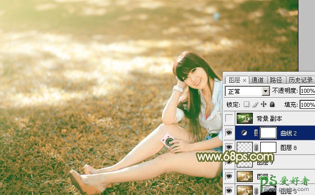 PS漂亮mm写真照调色实例:给公园外拍mm图片调出温暖的淡褐色...