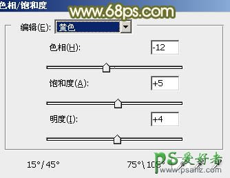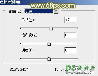4、创建色相/饱和度调整图层,对红色,黄色进行调整,参数及效果如下图。这一步主要把图片中的黄色转为黄褐色。