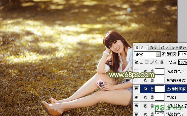PS漂亮mm写真照调色实例:给公园外拍mm图片调出温暖的淡褐色...