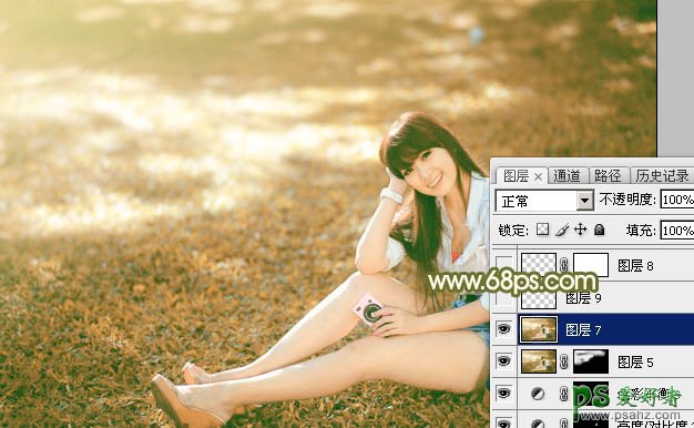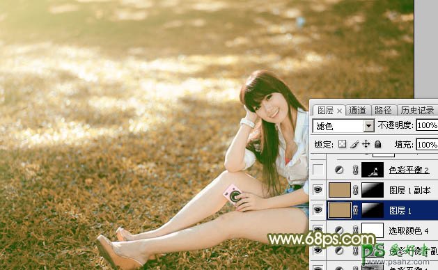 12、新建一个图层,填充黄褐色:#B6986B,混合模式改为“滤色”,按住Alt键添加图层蒙版,再用白色画笔把左上角部分擦出来,给图片增加一点高光,如果高光还不够明显,可以把当前图层复制一层,效果如下图。