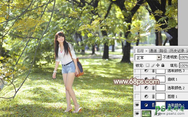 PS漂亮mm写真照调色实例:给公园外拍mm图片调出温暖的淡褐色效果