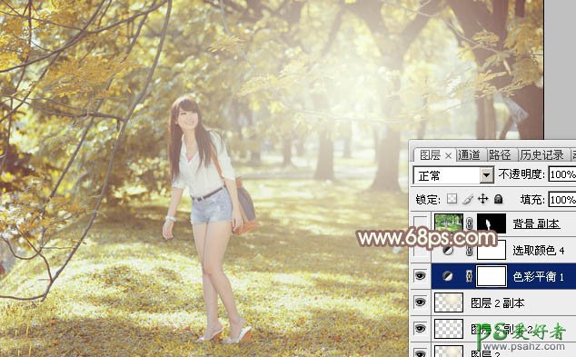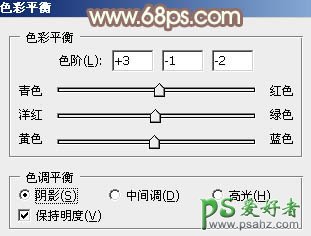 10、创建色彩平衡调整图层,对阴影,高光进行调整,参数设置如图23,24,效果如图25。这一步主要给图片高光部分增加淡黄色。