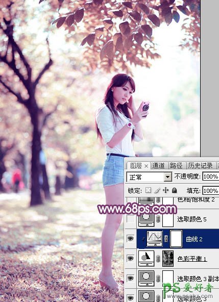 8、创建曲线调整图层,对RGB、绿、蓝通道进行调整,参数设置如图21,确定后按Ctrl + Alt + G 创建剪贴蒙版,效果如图22。这一步同样给图片暗部增加紫色。