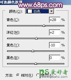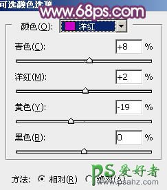 9、创建可选颜色调整图层,对红、黄、洋红、白、黑进行调整,参数设置如图23 - 27,效果如图28。这一步把图片中的红色及黄色转为紫色。