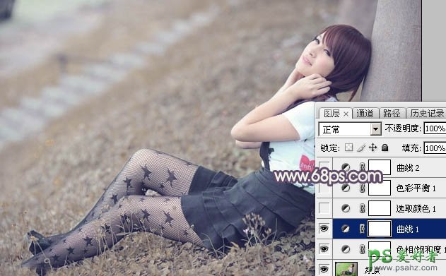 photoshop给外景自拍漂亮妹子写真照调出古典中性冷褐色效果