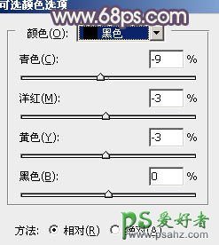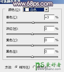 3、创建可选颜色调整图层,对红、黄、白、中性、黑进行调整,参数设置如图9 - 13,效果如图14。这一步主要给图片增加蓝色。