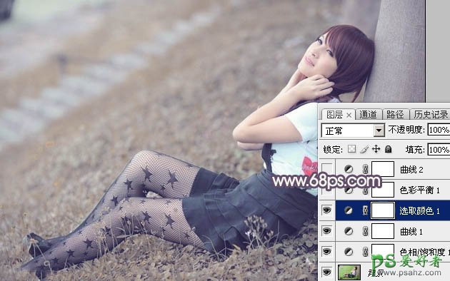 photoshop给外景自拍漂亮妹子写真照调出古典中性冷褐色效果