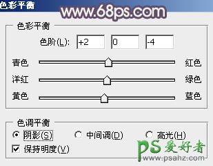 4、创建色彩平衡调整图层,对阴影,高光进行调整,参数及效果如下图。这一步微调图片暗部及高光颜色。