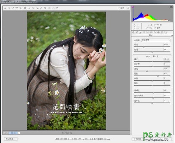 [文章导读]PS调色教程,美女后期调色实例,美女摄影师教你用photoshop软件快速打造清新复古色调-美女后期调色 首先是对比图 这张照片的拍摄参数如下: 拍摄当天天气良好,光线正常,室外有一点阳光,在室外拍摄一般习惯不用最大光圈,以保证照片细节