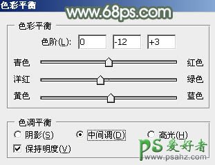 2、创建色彩平衡调整图层,对中间调进行调整,参数设置如图4,确定后按Ctrl + Alt + G 创建剪贴蒙版,效果如图5。这一步同样给高光部分增加橙红色。