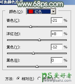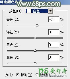 3、创建可选颜色调整图层,对红、黄、青、白、中性色进行调整,参数设置如图6 - 10,确定后同样按Ctrl + Alt + G 创建剪贴蒙版,效果如图11。这一步把高光部分的红色转为粉红色。